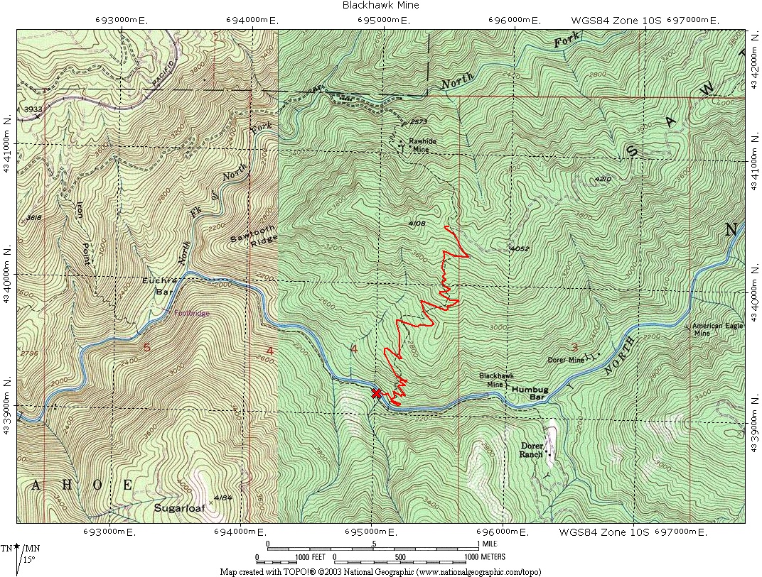 The USGS topographic map not only has the location of the mine incorrect, but also the incorrect spelling of Blackhawk rather than Black Hawk, the guide continues this error in naming.